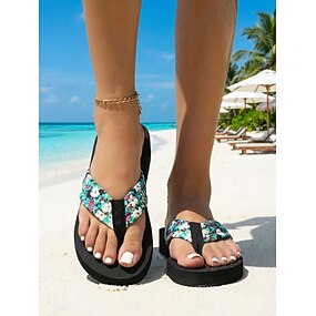 Женские шлепанцы с цветочным принтом – удобные пляжные сандалии с мягкой амортизирующей подошвой для лета, отпуска и повседневной носки