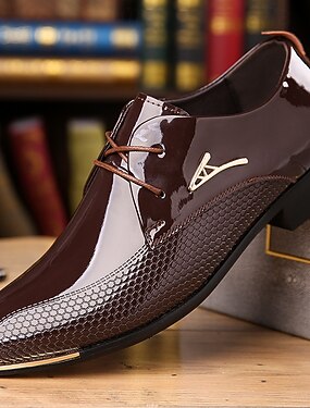 Мужские коричневые лакированные оксфорды из искусственной кожи – элегантные, стильные, с тиснением под крокодиловую кожу, идеально подходят для свадеб и торжественных мероприятий.