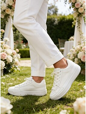 Белые мужские слипоны из искусственной кожи, универсальная и удобная обувь для свадеб в саду, повседневная, но элегантная для свадебного дня.