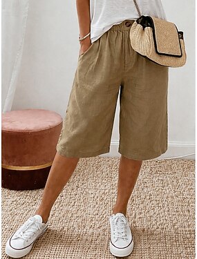 Жен. Шорты из хлопка и льна Брюки из хлопка и льна Шорты Брюки Уличный стиль На каждый день Короткие Средняя талия Полотняное плетение Карман Воздухопроницаемость Мягкий Удобный Слабоэластичная