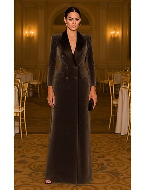 Платье-смокинг Ножны Официальные Свадебный гость Сатин Бархат Элегантный стиль Длинный рукав В пол Пик отворот Двубортный крой