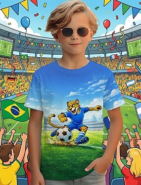 Мальчики 3D Графика Леопард Футбол Футболка С короткими рукавами 3D печать Лето Весна Спорт Мода Уличный стиль Дети 4-12 лет Вырез под горло Повседневные на открытом воздухе Стандартный