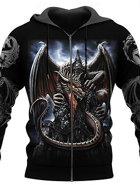 Муж. Дракон Графические принты Толстовка Худи Уличный стиль Оригинальный рисунок На каждый день Большой и высокий Длинный рукав Капюшон Для занятий спортом Повседневные Спорт Праздники