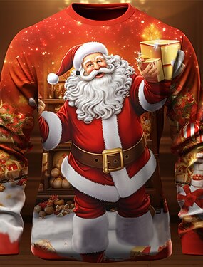 Новогодняя тематика Муж. Графика Дед Мороз Футболка Длинный рукав Футболка 3D печать Вырез под горло Рубашка Мода Оригинальный рисунок На каждый день Для спорта и активного отдыха Праздники На выход