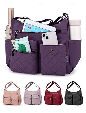 Женская стеганая нейлоновая сумка через плечо с множеством карманов — вместительная водонепроницаемая сумка для путешествий, работы и повседневного использования.