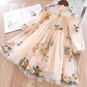 Дети Девочки Платье Цветочный принт Длинный рукав Школа Отпуск С принтом Принцесса Милая Полиэстер Ассиметричное Платье A-силуэта Осень Зима 3-10 лет Розовый Бежевый