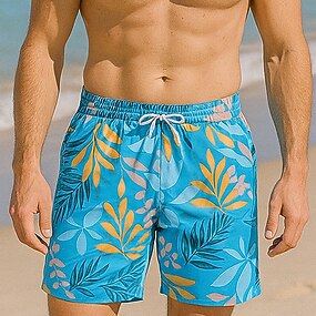 Муж. Шорты Пляжные шорты Кулиска Графика Лист Животное Быстровысыхающий На открытом воздухе Длина колена на открытом воздухе Отпуск Дом Отпуск Этнический стиль Небесно-голубой Армейский Зеленый