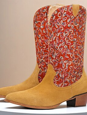 мужские красные ковбойские сапоги из жаккардовой ткани – высокие сапоги в стиле вестерн с ретро-образцом для музыкальных фестивалей, сценических представлений и ношения на открытом воздухе