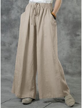 Жен. Штаны Повседневные брюки Летние штаны Пляжные штаны Отпуск Мода На каждый день Полная длина Нормальная Сплошной цвет Полотняное плетение Широкие Комфорт Мягкий Дышащий Неэластичная