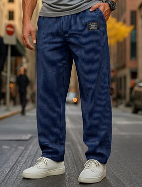 Муж. Штаны Вельветовые брюки Повседневные брюки Кулиска Эластичная талия Прямая нога Сплошной цвет Полотняное плетение Влагоотводящие Дышащий Полная длина Повседневные На выход Отпуск Мода