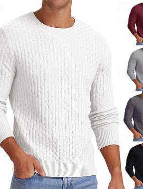 Муж. Вязаная ткань Пуловер Свитер Рельефный узор Вязать Обычные топы Трикотаж Облегающий крой Полотняное плетение Вырез под горло Вязаная одежда Современный Повседневные На каждый день Одежда