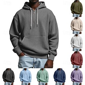 Муж. Толстовка Толстовки с вафельным принтом Толстовка с капюшоном и пуловером Синий Абрикосовый Винно-красный Черный Светло-зеленый Капюшон Полотняное плетение Карман кенгуру Текстура