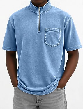 Муж. Рубашка из 100% хлопка с кислотной стиркой футболка футболка С короткими рукавами Винтаж Один цвет Ретро На каждый день Старинный Окрашенная одежда Блеклый Вырез под горло