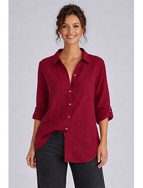 Жен. Нормальная Рубашка Блуза Хлопчатобумажную рубашку 100% хлопок Однотонный Классический Длинный рукав Воротник-стойка Длинные топы Повседневные Синий Черный Белый Красный Лето Весна Осень