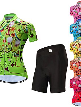 Жен. Велокофты и велошорты С короткими рукавами Горные велосипеды Шоссейные велосипеды Лето Весна Осень Желтый Розовый Красный В полоску С узором Цветочные ботанический Цветы Смешной Велоспорт