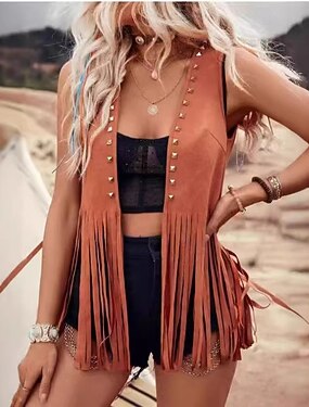 Ретро Богемный В стиле 1970-х Замшевый жилет Хиппи Бахрома Маскарадный костюм Жен. Карнавал На каждый день Парад гордости Месяц гордости Взрослые Жилетка Все сезоны