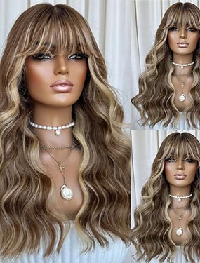 Необработанные девственные волосы Закрытие 5x5 13x4 Кружева Фронт Парик Аккуратная челка С чёлкой Бразильские волосы Свободные волны Коричневый Разноцветный Парик 130% 150% Плотность волос