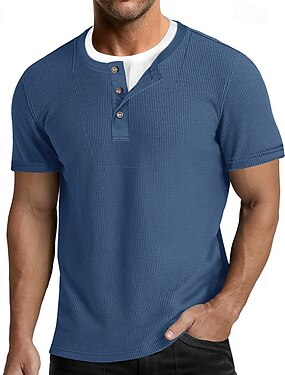 Муж. Вафельная рубашка Henley Футболки Футболка из хлопковой смеси С короткими рукавами Контрастных цветов Полотняное плетение Мода Оригинальный рисунок На каждый день