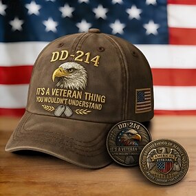 Мужская кепка ветерана DD-214 с двумя памятными монетами, бейсболка с цифровой печатью, посвященная военнослужащим в отставке, с изображением белоголового орла, регулируемая повседневная кепка "Это