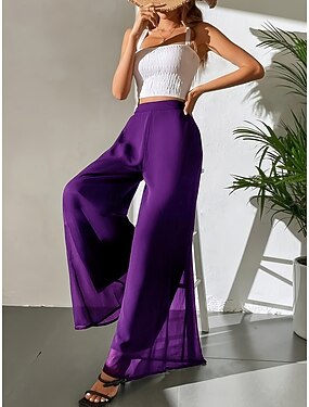 Жен. Широкие Костюм Брюки Брюки палаццо Мода Уличный стиль Полная длина Завышенная Полотняное плетение Воздухопроницаемость Удобный Для улицы На каждый день На выход Черный Белый Желтый Розовый