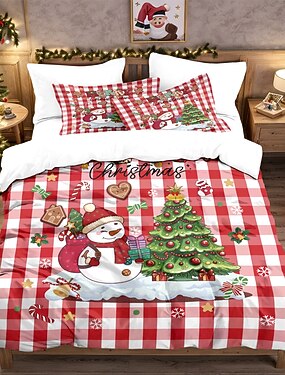 Рождественский комплект из 3-х пуховых постельного белья с красным клетчатым рисунком снеговика, удобная постельная принадлежность для гостиницы или спальни, включает в себя 1 пододеяльник и 2