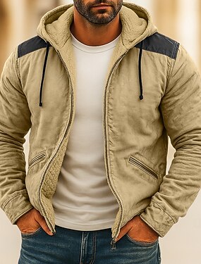 Муж. Толстовка Толстовка с капюшоном на молнии Толстовка из флиса Толстовка с капюшоном на флисовой подкладке Синий Коричневый Зеленый Хаки Капюшон Полотняное плетение Пэчворк Цветовые блоки