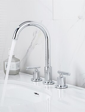 латунный смеситель для раковины, широко распространенный смеситель для ванной с двумя ручками и тремя отверстиями, с клапаном и переключателем горячей/холодной воды