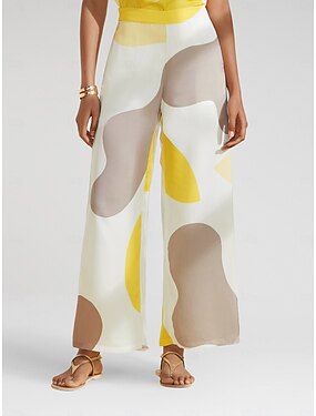 Жен. Широкие Чино Прямой силуэт Элегантный стиль Винтаж Мода Полная длина Завышенная Леопард Полотняное плетение Пэчворк Карман Рисунок удобный Удобный Дышащий Неэластичная