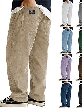 Муж. Штаны Вельветовые брюки Мешковатые брюки Повседневные брюки Эластичная талия Прямая нога Сплошной цвет Комфорт Влагоотводящие Полная длина Повседневные на открытом воздухе Праздники