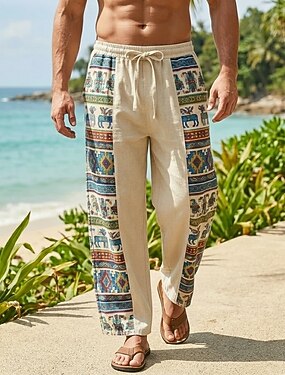 Муж. Льняные брюки Штаны Летние штаны Мешковатые брюки Пляжные штаны Кулиска Эластичная талия С принтом Этнический Комфорт Дышащий Полная длина Повседневные на открытом воздухе Пляж Мода Богемные