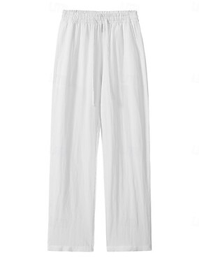 Жен. Штаны Летние штаны Повседневные брюки Отпуск Мода На каждый день Полная длина Завышенная Полотняное плетение Кулиска Эластичный пояс Прямая нога Комфорт Мягкий Дышащий Слабоэластичная