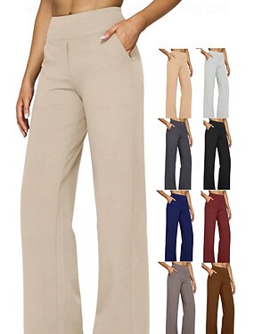 Жен. Широкие Штаны Повседневные брюки Прямой силуэт Отпуск Мода Уличный стиль Полная длина Завышенная Полотняное плетение Карман Эластичная талия Комфорт Неэластичная Повседневные Отпуск Для улицы