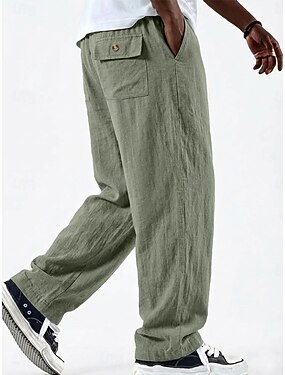 Муж. Льняные брюки Штаны Летние штаны Мешковатые брюки Карман Эластичная талия Прямая нога Сплошной цвет Полотняное плетение Комфорт Удобный Полная длина Повседневные Праздники Отпуск Мода