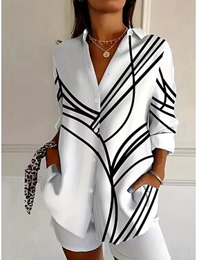 Жен. Рубашка Блуза Пэчворк Пуговицы С принтом Графика Геометрический принт В клетку Винтаж тропический Повседневные Длинный рукав Рубашечный воротник Обычные топы Повседневные