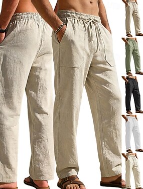 Муж. Льняные брюки Летние штаны Пляжные штаны Кулиска Карман Полотняное плетение Комфорт Дышащий Полная длина Повседневные Дом на открытом воздухе Отпуск Простой Армейский Зеленый Черный Неэластичная