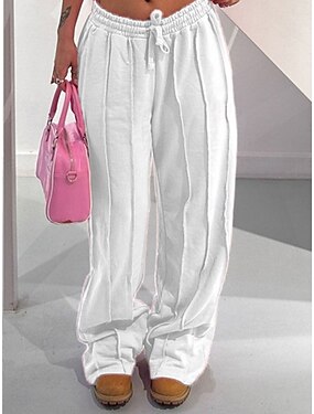 Жен. Льняные брюки Брюки Легкие На каждый день Полная длина Со стандартной талией Полотняное плетение Кулиска Карман Воздухопроницаемость Удобный Неэластичная Дом На каждый день