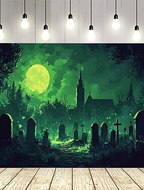 Гобелен с фотографией на Хэллоуин, мрачное кладбище, тыквенный фонарь и настенное панно с пейзажем полной луны, большая декоративная фреска для спальни, гостиной, вечеринки и домашнего декора