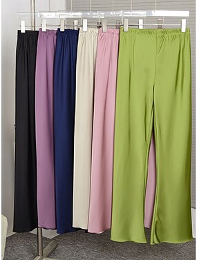 Жен. Широкие Чино Прямой силуэт Элегантный стиль Отпуск Винтаж Полная длина Нормальная Сплошной цвет Полотняное плетение Пэчворк Эластичный пояс удобный Эластичность