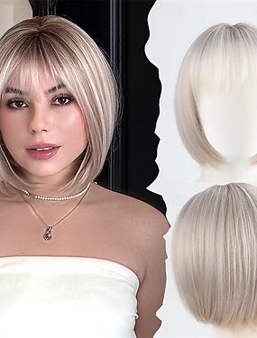 Короткие боб парики с челкой - прямой боб парик для женщин 12 дюймов синтетический парик жаропрочные волокна естественные парики для Хэллоуина и косплея