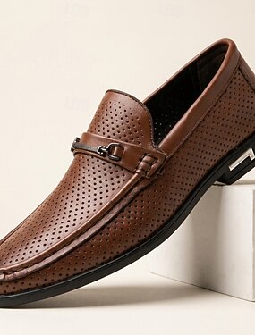 Мужские коричневые перфорированные лоферы без шнурков, деловые, повседневные, дышащие, удобные для ходьбы, подходят для офиса, повседневной носки, путешествий, встреч, выходных и создания элегантного мужского стиля.