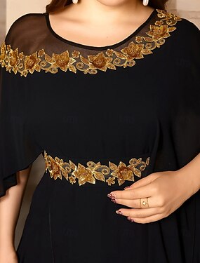 Платье на плечах колонка длина до щиколотки вечернее платье коктейльное платье платье для гостей на свадьбе платье матери невесты 3/4 длина рукава декольте уютное блестящее украшенное пайетками