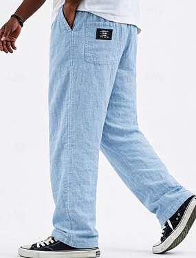 Муж. Льняные брюки Штаны Летние штаны Мешковатые брюки Карман Эластичная талия Прямая нога Сплошной цвет Полотняное плетение Комфорт Удобный Полная длина Повседневные Праздники Отпуск Мода
