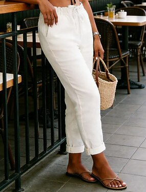 Жен. Женский Полная длина Лён Завышенная Элегантный стиль На каждый день На каждый день Белый Лето XS S M