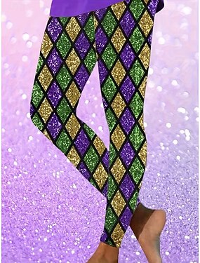Жен. Леггинсы Активный Отпуск Мода Полная длина ЗавышеннаяPantsКарнавал Графика Геометрический принт С принтом Высокий вырез Комфорт На открытом воздухе Удобный Эластичность фестиваль