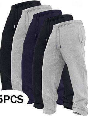 5 шт. мужских прямых спортивных брюк из флиса, повседневные брюки с эластичной резинкой на талии, простые, удобные, полной длины, для активного отдыха, для повседневного ношения в отпуске, модные