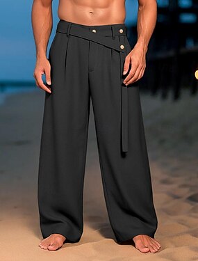 Муж. Костюм Льняные брюки Штаны Летние штаны Мешковатые брюки Карман Прямая нога Полоски Комфорт Дышащий Полная длина Отпуск Повседневные Праздники Отпуск Гавайский Черный Белый Неэластичная