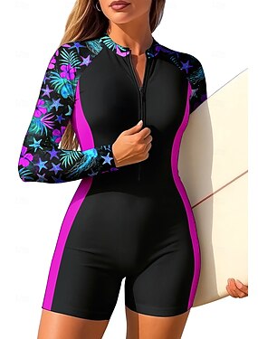 Жен. Стандартный Рашгард Цельный костюм для серфинга Купальный костюм Цветочный принт тропический Блокировка цвета Застегнуться со встроенным бюстгальтером Съёмные вставки УФ-защита от солнца UPF50