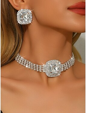 Женский комплект из серебряного колье и серег с кристаллами — гламурные украшения с крупными стразами для вечеринок, свадеб и вечерних мероприятий