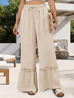 Жен. Штаны Летние штаны Пляжные штаны Повседневные брюки Отпуск Мода Классический Полная длина Нормальная Сплошной цвет Полотняное плетение Кулиска Эластичная талия Прямая нога Комфорт Легкость Мягкий