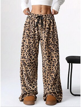 Жен. Широкие Чино Отпуск Мода Уличный стиль Полная длина Завышенная С сердцем Леопард Эластичный пояс Рисунок удобный Мягкий Удобный Эластичная на открытом воздухе Для улицы